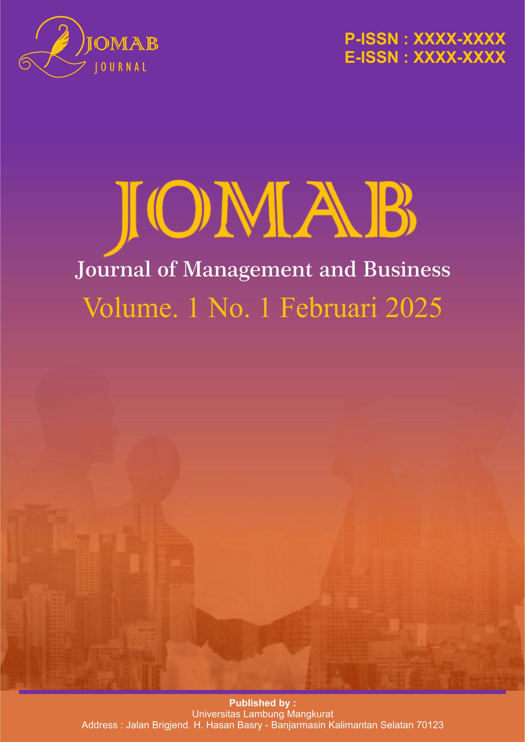 JOMAB : Journal of Management and Business, Menyambut baik kiriman yang memberikan wawasan tentang masalah terkini dan utama yang berhubungan dengan studi ilmu manajemen, bisnis dan kewirausahaan dan diterbitkan oleh Universitas Lambung Mangkurat. JOMAB menyediakan tempat bagi para peneliti untuk berdiskusi, mengejar dan mempromosikan pengetahuan di bidang-bidang yang muncul dan berkembang dalam studi ilmu manajemen dan bisnis. Artikel bisa ditulis dalam bahasa Inggris atau bahasa Indonesia dan terbit 1 tahun 4 kali (Februari, Mei, Agustus dan November).